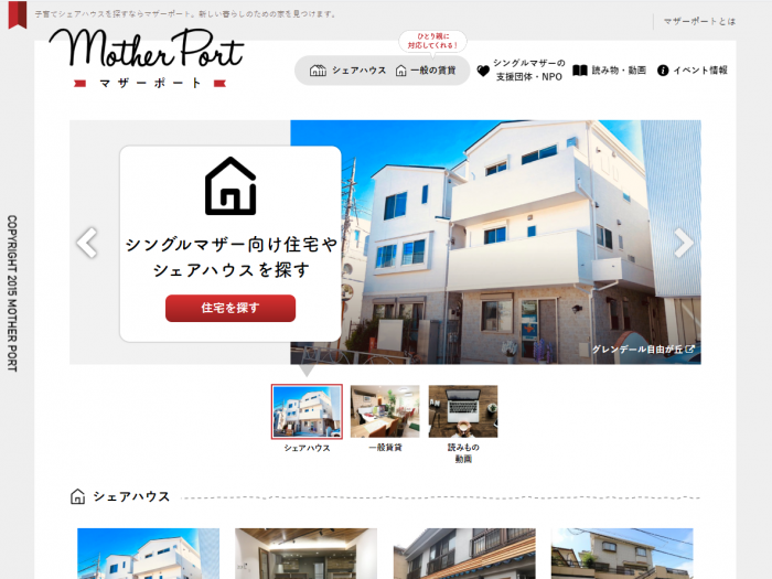 母子家庭のシェアハウス専門不動産サイト「マザーポート