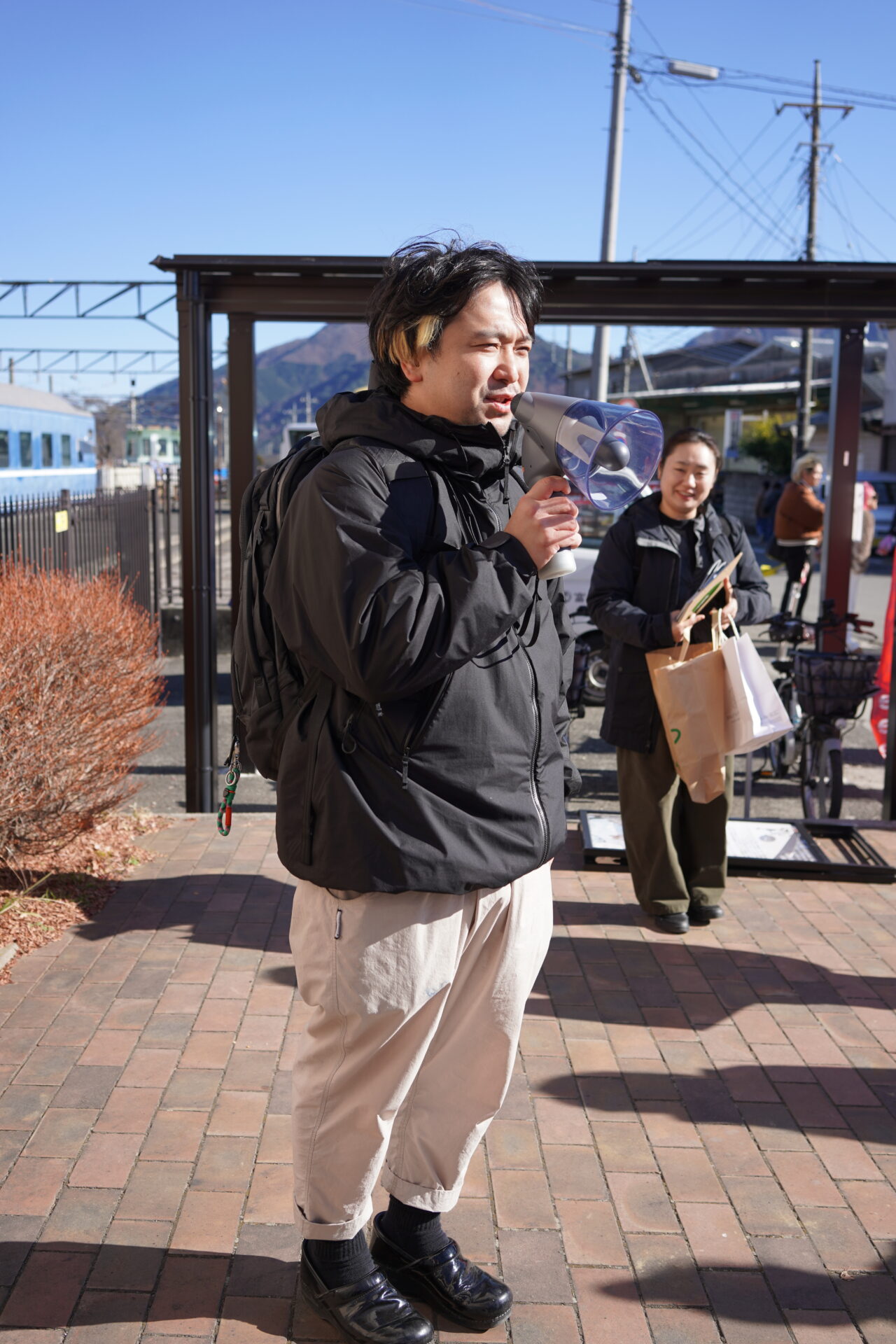 特定非営利活動法人かえる舎代表理事の斎藤和真さんに富士吉田の街を案内していただきます。慶應義塾大学で地域活性化について学んだ斎藤さんは、富士吉田市と慶應義塾大学が連携協定を結んでいる縁で、地域おこし協力隊に着任しました。かえる舎では、小中高校生に地元への愛着を持ってもらう教育プログラムを実施しています。