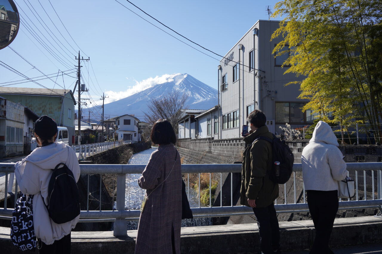 この日は最高の富士山日和。斎藤さんによれば、これほど綺麗に見えることは珍しいとのこと。富士吉田市は市域の大部分を富士山が占めています。富士吉田市役所内でFUJI TEXTILE WEEKを所管しているのは「富士山課」。富士山に関わる施策(山小屋の管理等)と観光施策の両方を一つの課が担うのも、富士山を頂くこの街の特徴です。