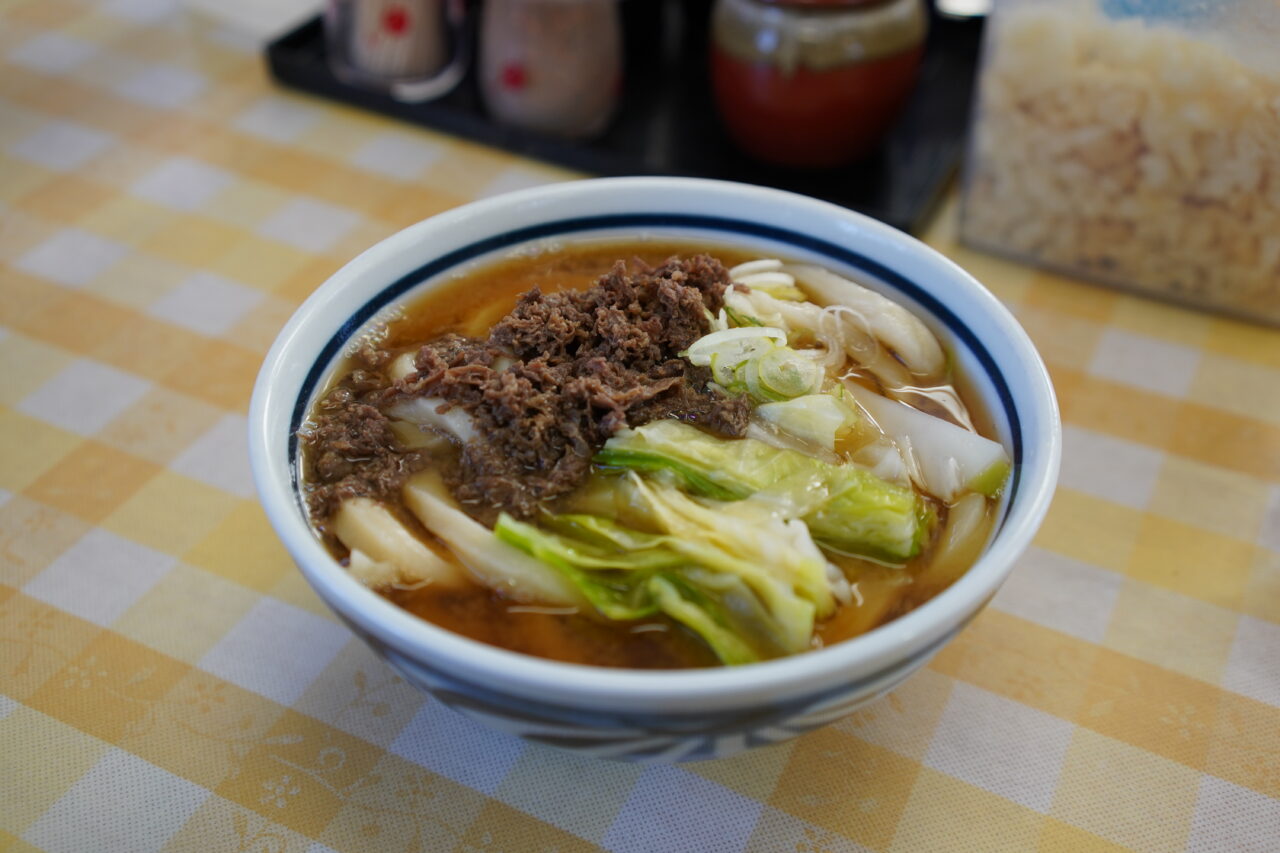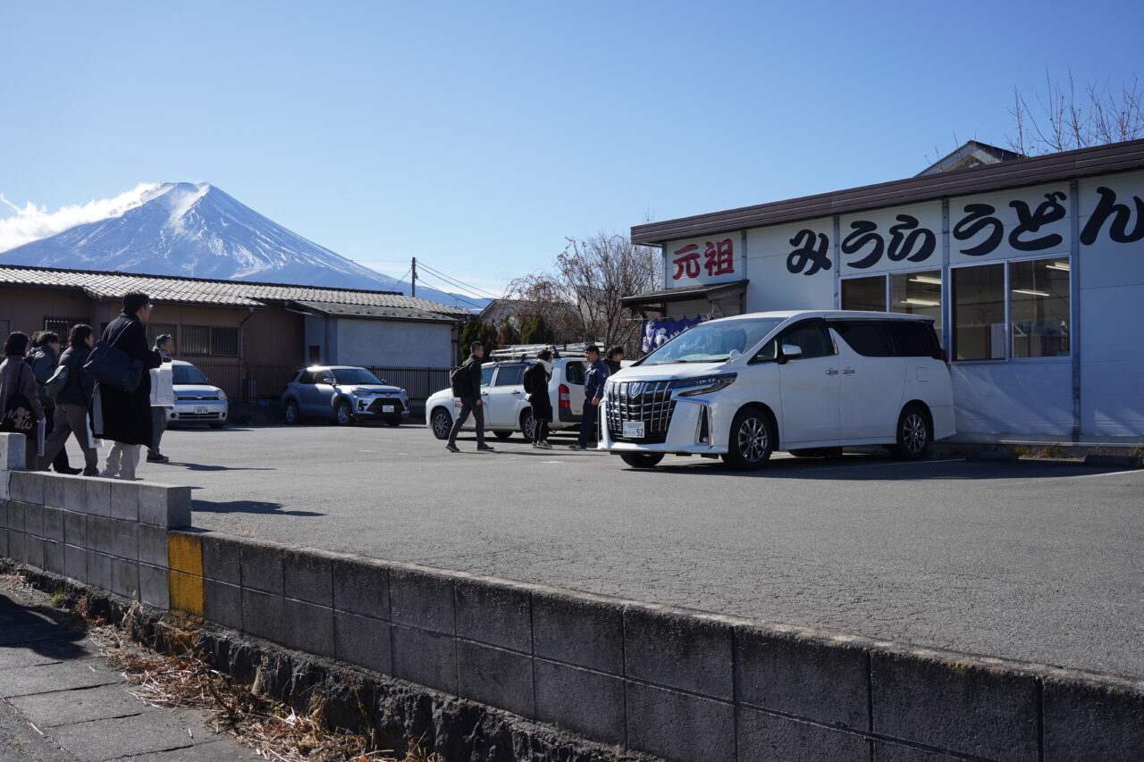 昼食は富士吉田市の名物「吉田のうどん」。日本一硬いと言われるほどコシの強いうどんですが、実はここにも伝統産業が深く関わっているとされます。織物産業に従事していたのは主に女性で、手が荒れないよう水仕事を避けたため、富士吉田では屈強な男性が生地を練ったことで硬いうどんが誕生したそうです。地場産業が食文化にも影響を与えているということを感じさせる一杯です。街歩きで冷えた身体も暖まり、いよいよFUJI TEXTILE WEEKの視察です。