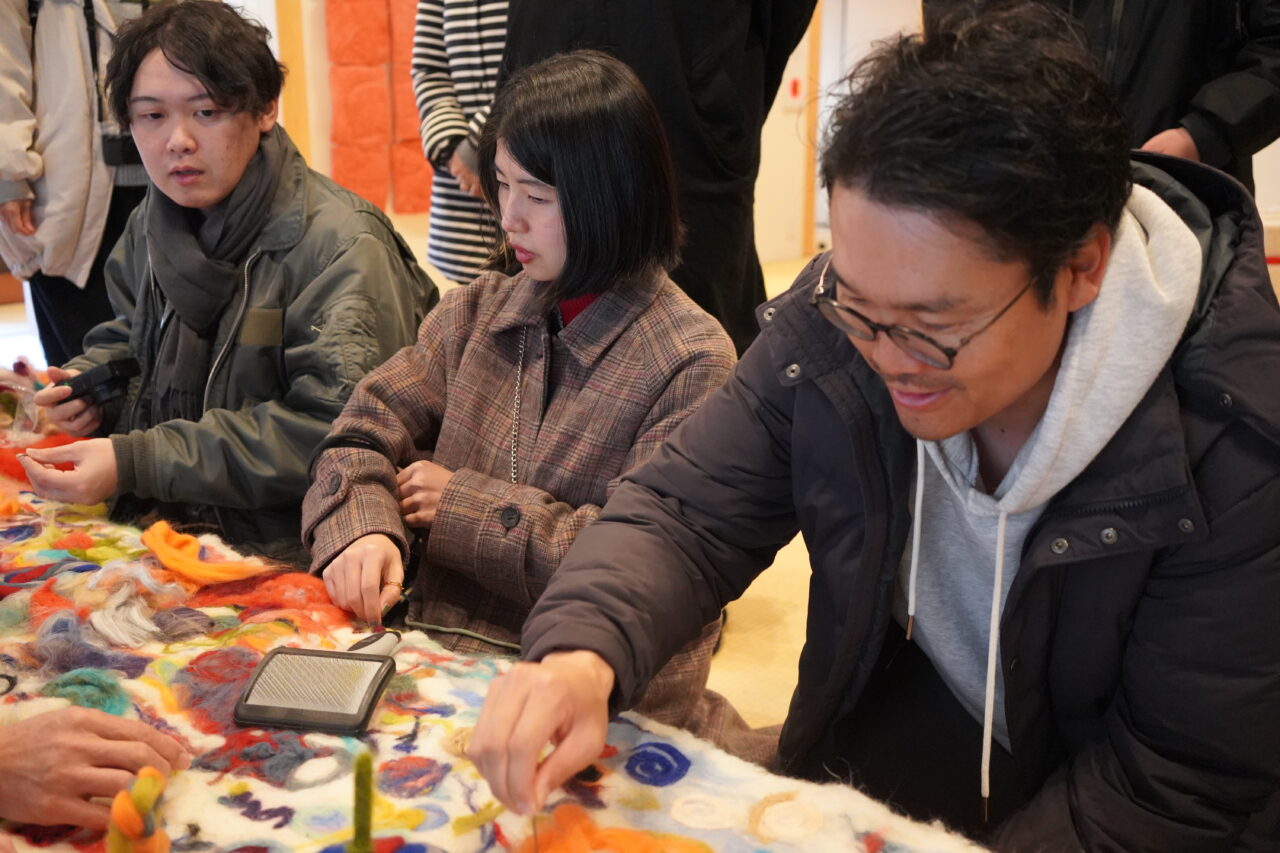 この寺院は会場のひとつとして、プラハ工芸美術大学の学生によるプロジェクト「Common Ground」が展開されています。芸術祭は、地域が世界とつながる貴重な国際交流の機会でもあるようです。また、境内では羊毛のパンチング体験が行われており、観客がともに作品をつくるという感覚を体験できました。