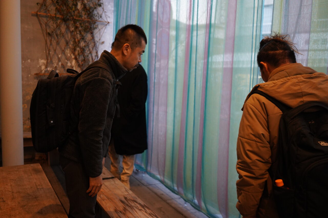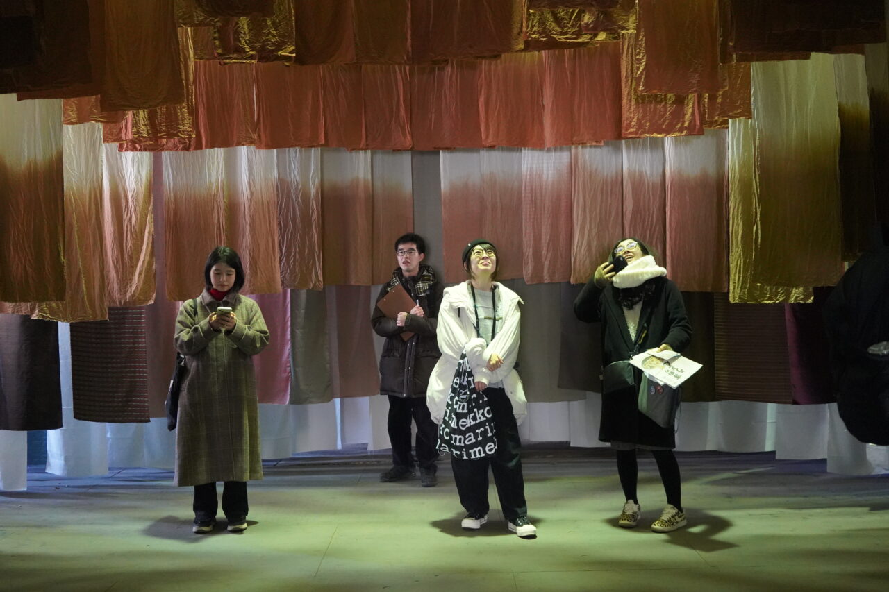 今回のFUJI TEXTILE WEEKの作品に共通するのは、伝統産業であるテキスタイルと、富士吉田の土地に宿る文化や歴史を融合することにより、富士吉田でしか生まれえない作品が実現しているということではないでしょうか。特に際立つのは、産業をテーマにすることにより、機屋や職人の技術、素材、工程、流通、そして担い手の生活と作品の生成過程を深く結びつけている点です。アーティスト、キュレーター、会場提供者に加え、産業の担い手が単なる協力者ではなく、調査・制作・展示の前提をつくる共同の当事者として関わっているからこそ、富士吉田ならではの密度が生まれているように思われます。