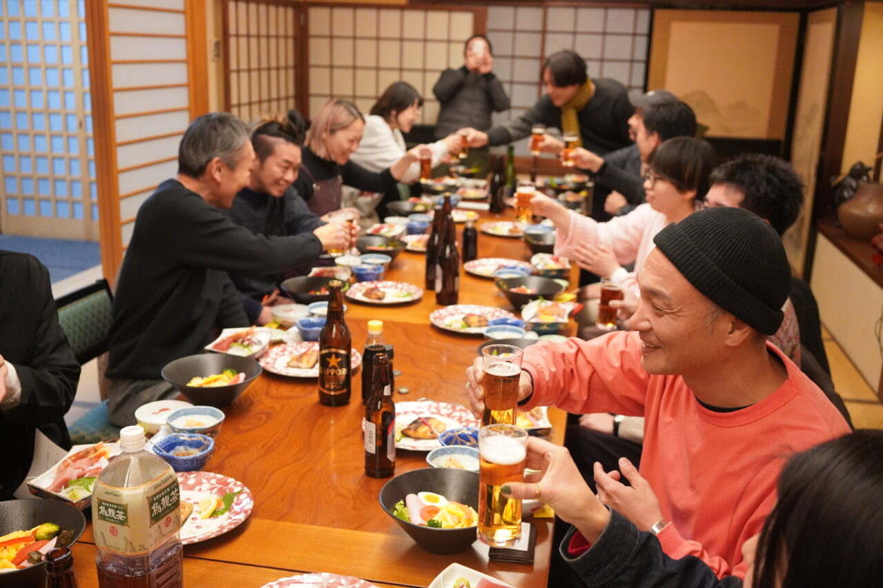 懇親会には芸術祭に関わる多くの方々にご参加いただき、視察の感想を伝えたり、疑問を解消したりする機会となりました。また、お互いの活動で課題に感じている点等を共有し、意見交換する姿が見られました。