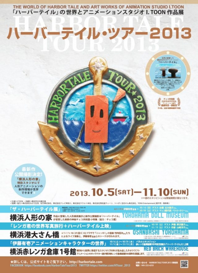 「ハーバーテイル・ツアー2013」は、2011年に作り上げたクレイアニメーション『ハーバーテイル』の世界を、ツアー形式で楽しめるアート展だ。スタジオI.TOONが主催し、「横浜人形の家」「横浜赤レンガ倉庫」「横浜大さん橋国際ターミナル」を主会場に、11月10日までの37日間にわたって開催している。横浜の人気スポットをぶらりと歩きながら、アニメーションとその舞台になった街をまるごと体験出来てしまうのだからおもしろい。このアート展の目玉企画となるのは、なんと新作『ハーバーテイル』の公開制作だ(人形の家)。そのほかにもクレイアニメーションのキャラクターやセットの展示、『ハーバーテイル』の上映に、トークプログラムと、バラエティあふれるプログラムが各会場であなたを待ちかまえている!