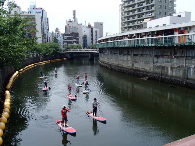 開港都市として栄えた横浜は、都市に近い場所に港や河川がたくさんある。このエリア性に着目し、水辺を活用したプログラムを運営しているのが、黄金町に拠点を構える「水辺荘」だ。主に週末・祝日に、カヤックやE-BOAT(10人乗りの大型カヌー)による都市部の河川クルーズをはじめ、SUP(=Stand up paddle board、一枚のボードと一本のパドルで水面を漕いで進むアクティビティ)でのアートイベントへの参加など、さまざまなプログラムを実施している。