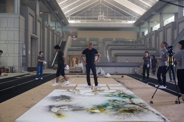 「火薬を使ったりする私の表現における方法論は、コントロールできないこと、偶然性が生まれること、自然の力にゆだねることです。最初から最後まで決まった枠の中で完結するのではなくて、まわりの人々のエネルギーや素材、例えば今回の場合は日本の火薬などの素材とともに動いていくこと。ボランティアの方たちと一緒に作ることもそうです。彼らは創造者でもあり、鑑賞者にもなる。このように自然の流れにゆだねるという方法論は、アジア的なものだと思います。東洋の思想の中には、流れと変化がある。和紙を扱うこともそうですね。和紙はやわらかくて、生きています。そこに墨絵の雰囲気が出る。和紙のうえには東洋の思想を感じます。」