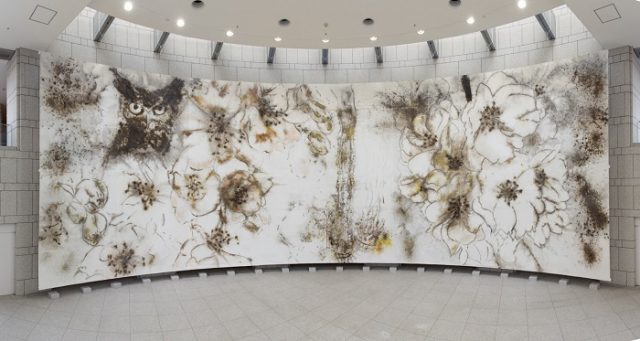 《夜桜》2015、火薬、和紙、800×2400cm、作家蔵 Photo by KAMIYAMA Yosuke