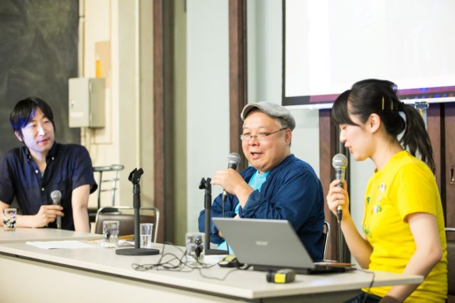 「はま太郎フェス」に駆け付けた南陀楼綾繁さん。「はま太郎居酒屋をやったら」と提案する場面も photo:Ryusuke OONO