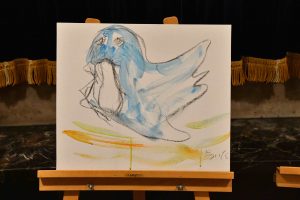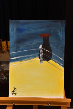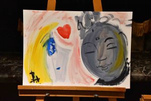 3回のセッションが行われたが、異変が起きたのは第3回戦での会田さん。「お題」をながめ腕組みしたり歩き回りながら「うーん」と唸り声を出すばかりで15分が過ぎてしまった。ついに「降参します。持ち帰らせてください。24時間以内に描いてツイッターにあげます」という事態となった。「笑い」をテーマにした遊びの場かと思われたが、期せずしてアートを生み出すのに苦悩するアーティストの姿を垣間見ることになった。