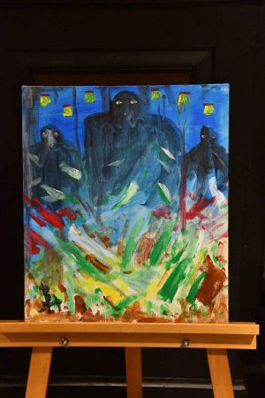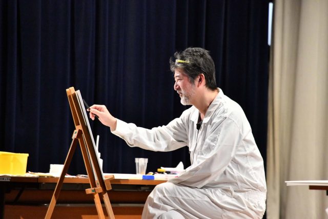 独り言をつぶやきながらキャンバスに向かう会田誠さん