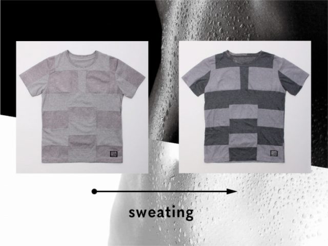 武部教授:2016年に、クリエイターや研究者が集まるイベント「横浜の未来にひらく“100の種”」(アーツコミッション・ヨコハマ主催)への参加をきっかけに矢内原さんと親しくなり、一緒にプロジェクトを行うようになりました。たとえば、汗をかくとデザインが変化する「NEGA-POSI」という服の開発があります。汗をかくことが恥ずかしいのではなく、かっこいいに変換されるTシャツです。