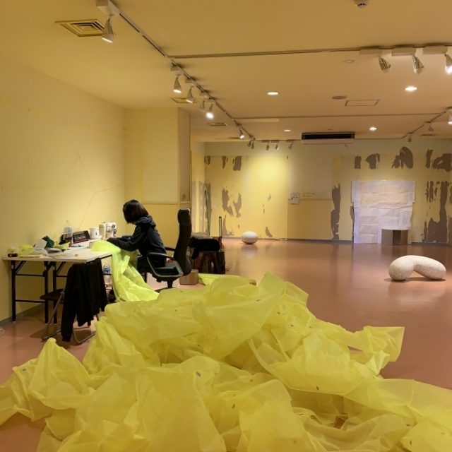 私が美大生のころ、鉄や石などでつくられた巨大なパブリックアートが街なかにたくさん建てられていました。そうした「マッチョ」というか「権威」を感じさせるような作品から離れよう、離れようとした末に、今の私の作品があるのかもしれません。 その理由を端的に言い表す言葉をまだ見つけていないのですが。不安を引き受けながら、大きくてゆらめているような作品に身を任せたい。それが今の私の研究課題です。関係者にちょっと迷惑をかけてしまっているかもしれませんが、よろしくお願いいたします。