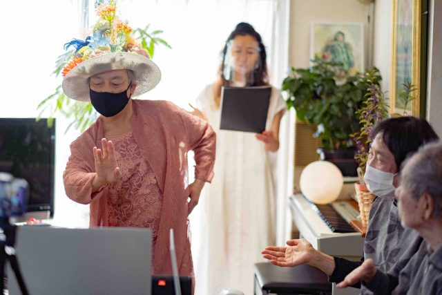 Tさんは積極的な参加はなかったものの、ずっと穏やかな表情でリアルのパフォーマンスと画面の中の動きを見守っていた。