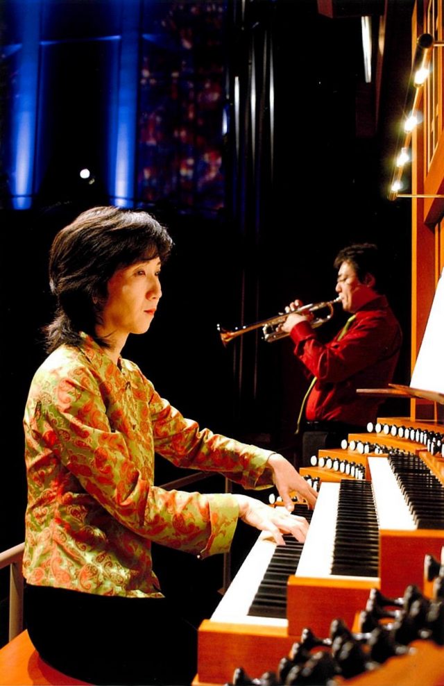 2004年「クリスマス・オルガン・1ドルコンサート」でトランペットと共演する三浦はつみさん 写真提供:横浜みなとみらいホール