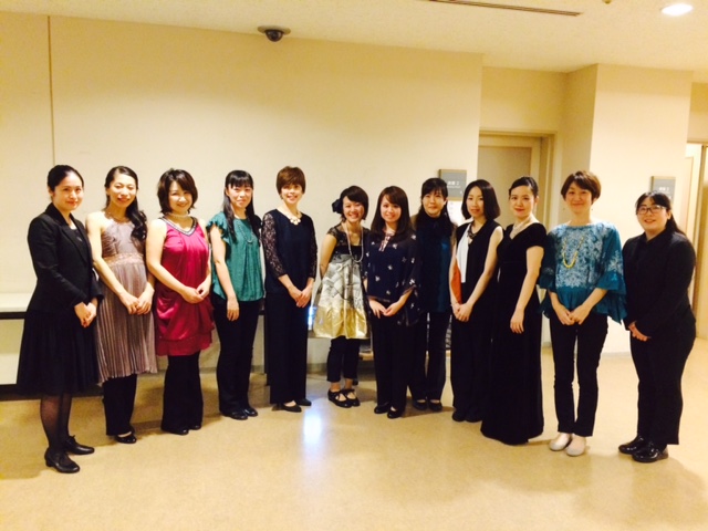 2015年「オルガン・リサイタルシリーズ38 いにしえから受け継ぐ音・未来へ放つ光(ルーシー) 」終演後に横浜みなとみらいホールバックステージにて。ホールオルガニスト・インターンシップ・プログラムの修了生のオルガニスト10人が「横浜ルーシーズ」を結成、リサイタルを行なったときの記念写真 写真提供:横浜みなとみらいホール