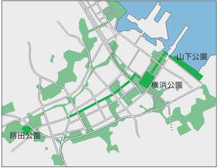 緑の軸線構想 (横浜市パンフレット「横浜の都市デザイン」より)