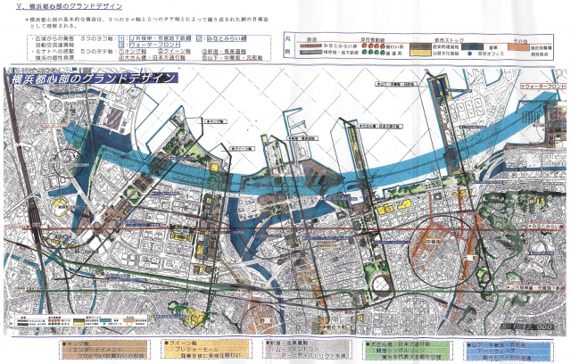 なお、横浜みなとみらい21地区は、先にあげた「六大事業」のうちの一つ「都心部強化事業」として位置付けられたものです。この「都心部強化事業」は、港町の文化を色濃く残す関内・伊勢佐木町地区と大商業地域となった横浜駅周辺地区と二分化された横浜都心部を一つにつなげることを狙ったもので、都市デザインの思想も積極的に取り入れられています。