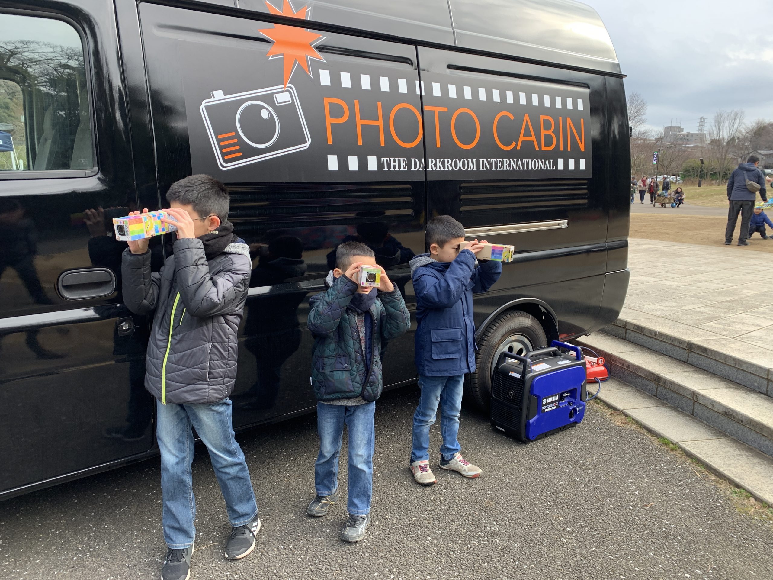 2019年度は「PHOTO CABIN」に乗り込んでカメラの原理であるカメラ・オブスクラを体感したり、暗室体験ができるワークショップや、プロの機材で撮る / 撮られるを体験できるフォトセッションを実施しました。