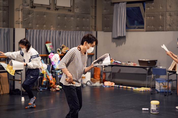 ― 今日の稽古では、「ミュージカル風」「童謡風」「JPOP風」と、俳優が台詞を歌いながら、最後まで通すことをしていましたね。