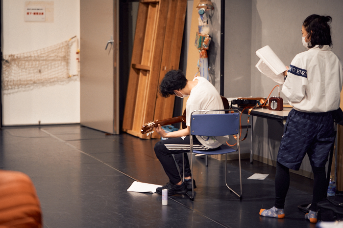 川口 稽古入り前日までは、「真面目に本読みでもやるか」と思ってたんだけど、それがどうしても嫌で考えていたら「あ、歌合わせだ」みたいな閃きが訪れて。台詞を即興で歌うことにすると、役者としても「ことば」が持っている色あいや文体のリズムを感じながら戯曲を読まないといけなくなります。そうすると、最初の本読みでは聞こえてこなかった台詞が聞こえるようになってくる。そこがやっぱり「歌合わせ」の面白いところです。