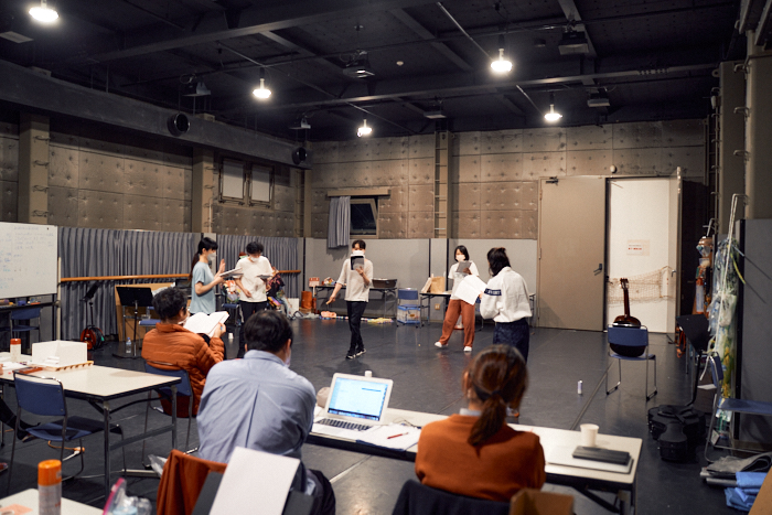 ― 今日の稽古では、「ミュージカル風」「童謡風」「JPOP風」と、俳優が台詞を歌いながら、最後まで通すことをしていましたね。
