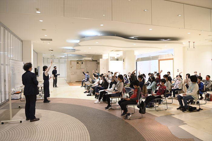 2回目のミーティングには講師にデザイナーのヤナキヒロシさんを迎えて、プログラム製作について学び、グループワークではどんなプログラムにするかを議論した。「世界を巡るというテーマをあらわすために地球儀をデザインしたらいいのでは?」「クイズ形式を取り入れたら子どもたちの関心をひくのでは?」「自分たち中学生プロデューサーの紹介コーナーを作りたい」など多くのアイデアが出た。