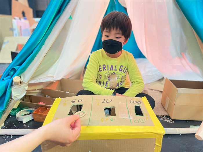 そこから、まちクラで通貨をどう扱うかというのは大きなテーマのひとつになった。エンデが話しているエイジング・マネーもそのアイディアのひとつだし、そもそも通貨の概念をどう登場させるか、虚構の劇場の中でどう考えていくかは最終的に子どもたちに託そうということになった。幸いにも、まだまちクラには「銀行」が存在していない。そして、圧倒的なデフレ状態になっていて、オシゴトの需要と供給のバランスもまだとれていない。その状態に子どもたちが「つまらない」と気付いて、「おもしろく」するために相談をして、何かやってみようということになる。地域通貨の流通の一方で、みんなが無償で使える場所やものも同時に作られていく。ひとつひとつのアイディアが連続して、町が常に蠢いてひとつの生き物のように感じられる。