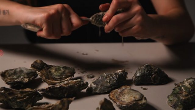 ペーリ版の『エウリディーチェ』の興味深いところが、本来は悲劇のはずのギリシャ神話をメディチ家の婚礼の余興として作られたものなので、ハッピーエンドになっているんですね。何かと気が滅入る時代、悲観的になるのは簡単ですが、そこであえてアップリフティングな作品を届けたいと思い、映像のなかでは牡蠣のパペットがオペラを歌います。2つのウェブサイトで展開される映像には、それらが繋がっていることを示すために、それぞれ画面の右と左に〈割印〉が施されてあります。一方を見ているともう片方のことを想う、いわば貝合わせのイメージです。目の前で見えているものは不完全で、常に片割れでしかないんです」