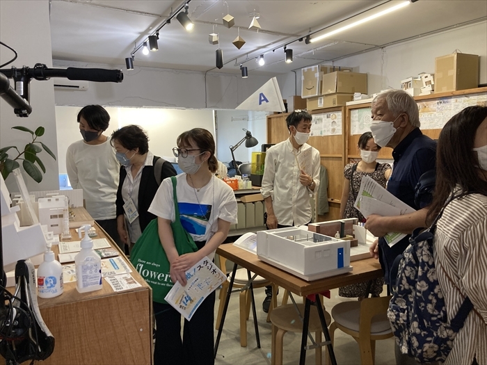 関内で活動する建築家、原崎寛明(設計事務所CHA)さんをツアーコンダクターに迎えたツアー。ご本人の事務所では建築模型を手にプロジェクトのお話をしていただいた他、建築を設計する上で欠かせない他分野の協働者の拠点を巡りました。