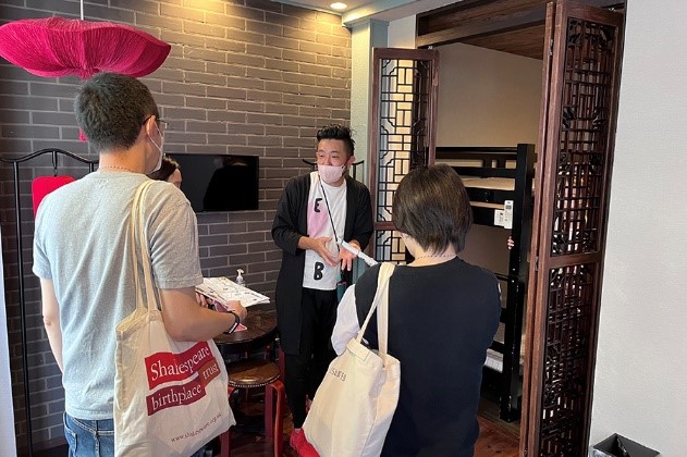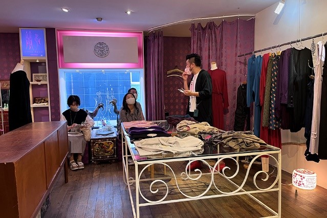 ツアーコンダクターのアオキジュニヤさん(グラフィックデザイナー)がオーナーをつとめる、中華街にあるホテル「ROOM INN Shanghai」からツアーがスタート。本業とは別の業種(宿泊業)に踏みだしたご本人の視点・経験のお話を伺いながらホテルを見学しました。次は、中華街のメイン通りを抜け「ROUROU」へ。