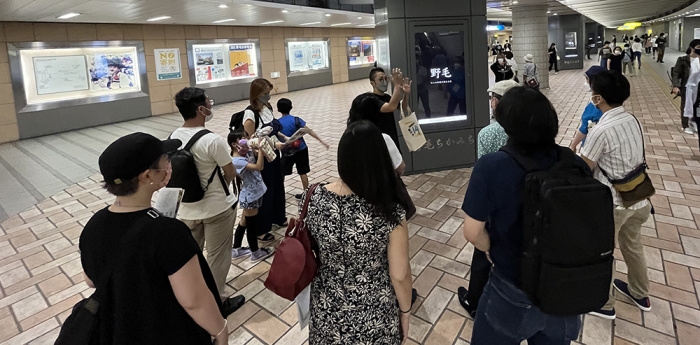 「濃い!黄金町アートツアー」では、地域防犯拠点ステップ・スリーからスタートして、黄金町で活動しているアーティストのアトリエや開催中の展覧会を訪問しました。黄金町を周りながら、黄金町の歴史、黄金町にアーティストの拠点が増えている背景などもツアーコンダクターからお話があり、ただ巡るだけではなく、人のつながりを感じながら巡れるツアーとなりました。