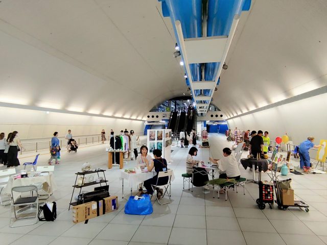秋の本イベントに先駆けて、7月8日(土)にプレイベント「ミナトノアート+(プラス)」を開催。横浜で活動する15組のアーティストがみなとみらい駅「みらいチューブ」に集結。アートやクラフト作品の展示販売、古道具・古着のヴィンテージマルシェ、ワークショップ、DJパフォーマンスなどが行われました。