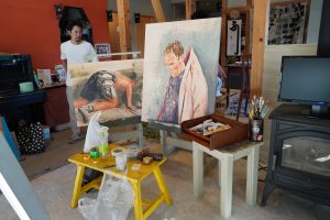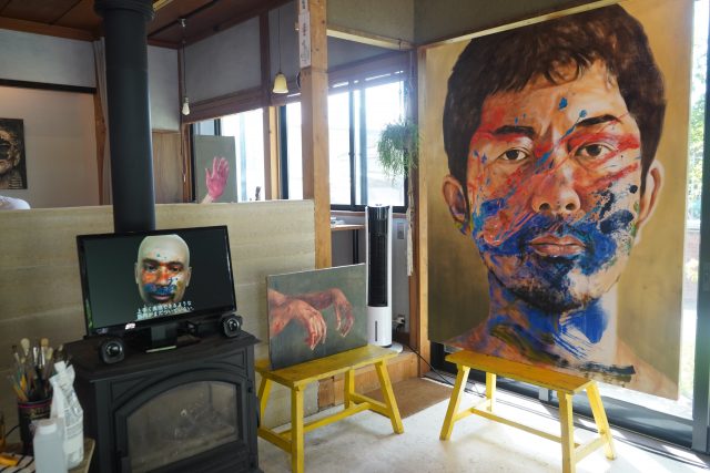 今回は油彩画のポートレート「Abstract Face」数点と「Abstract Face」のCG映像などを展示し、この先の「Abstract Face」シリーズ展開のため、来場者の中から絵画のモデルとなってもらえる人を探し、次回の滞在制作(11月に同じ場所で開催予定)で今回の鑑賞者が絵画となって現れる、という、レジデンス、鑑賞、展示が一体となった制作プロセスを行いました。