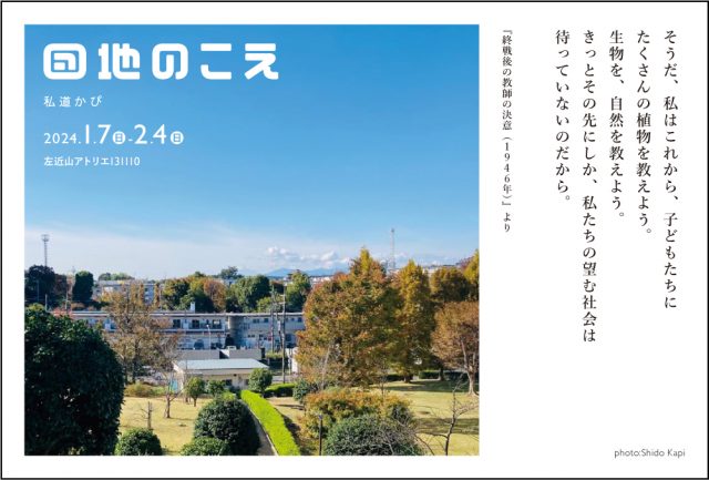 2023年11月に左近山アトリエ131110に滞在し、左近山のコミュニティの方と交わり、暮らす人の話を聞き、脚本を書いた音声作品の展示。読む/聞く/歩くことで多面的に100年前から100年後までの左近山団地の声に出会うことができます。
