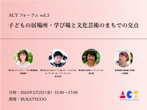 ACYフォーラム vol.3「子どもの居場所・学び場と文化芸術のまちでの交点」開催決定【定員に達したため受付終了しました】