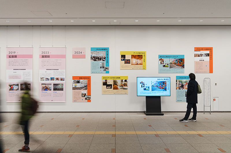 報告会が行われた会場の奥では、2007年の設立から続くACYの活動年表やその活動がまちに広がった様子、そして2024年度の主催・共催事業の成果が、パネル形式で展示されました。