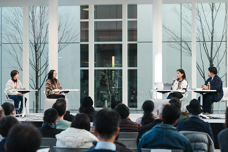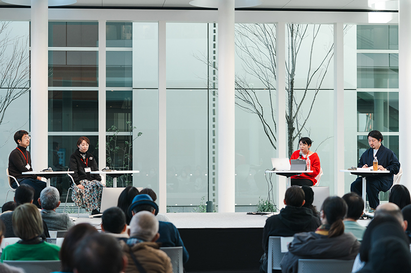アーティストによる活動報告では、各拠点の運営者と年間を通じて活動をみてきた審査員の方々も各1名ずつ登壇しました。