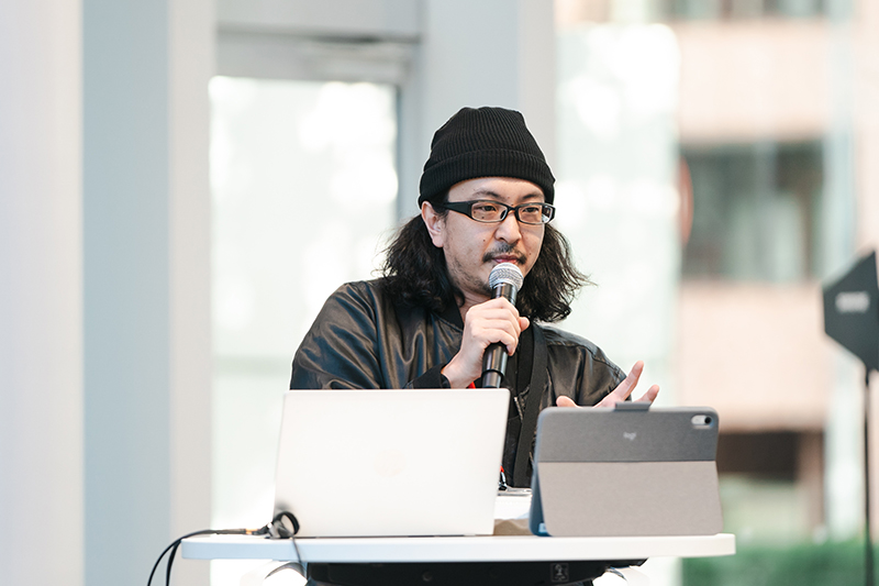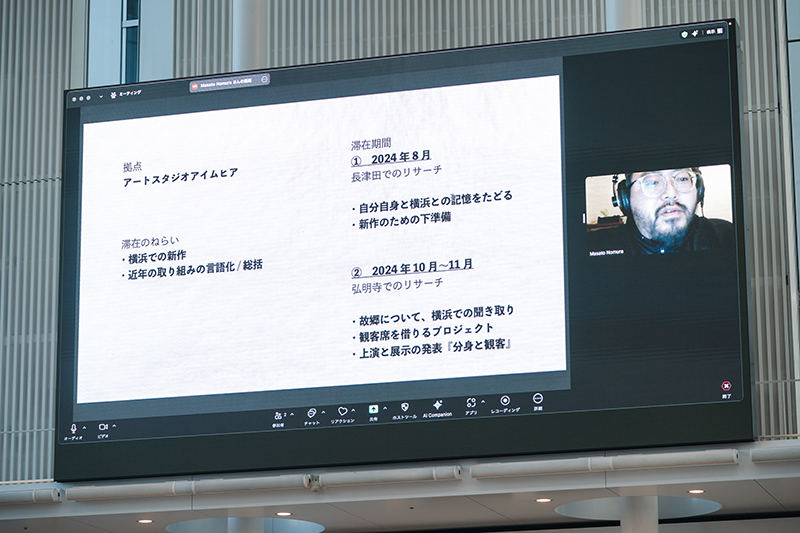 第一部の進行を務めたプログラム・オフィサーの小原光洋から、「アーティストのみなさんが横浜の風土、文化を調べることやそこに暮らし活動する人々と交流することが、作品の成熟や創作アイデアの発見などにおいて良い影響をもたらすと考えている」と拠点滞在制度への抱負が伝えられました。