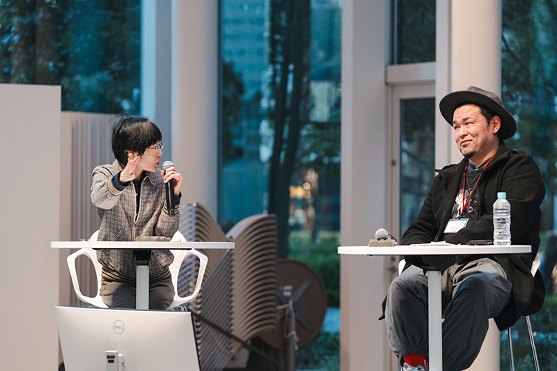 審査員の岡本さんは、フェローシップ助成は「アーティスト・拠点・地域がいかに融合するかが、大きなポイントの制度」だといい、「結果的に野村さんの滞在を通じて渡辺さんも交流が増えましたか?」と問いかけました。「野村さんが毎回どんな話をしてきたかを報告してくださるので、街に対する理解度が上がった」と渡辺さん。
