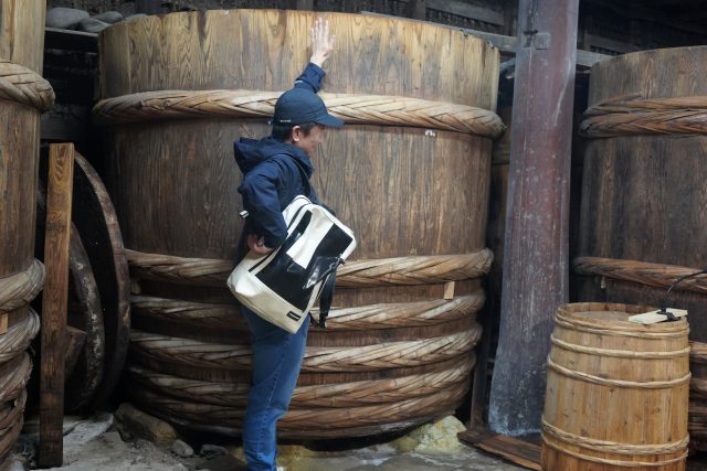 「秋葉糀味噌醸造」は、1832(天保3)年創業。明治時代以来の建物と、200年近い年月が経っていると考えられる大きな樽に圧倒されます。味噌造り教室も開催されています。