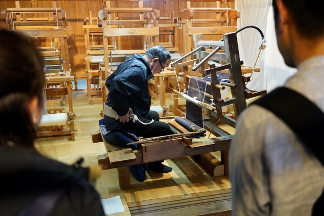 結城を代表する伝統産業「結城紬」。その歴史を今に伝えるのが、明治40年創業の「奥順」です。結城紬を一般の方に紹介するミュージアム「つむぎの館」を併設しています。本場結城紬は、糸づくりから織り上げまでに2~3年かかり、絣模様が入る場合はさらに時間を要し、4~5年かかることもあるという手間暇のかかる高級品です。その作業の一端を実際に見せていただきました。