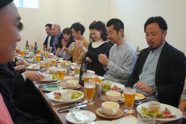 街歩きのあとは、結城と横浜の人々がより深い交流をすべく懇親会が開催されました。会場は「NORA NERO COTTO」。駅北口商店街から少し住宅街に入った閑静な場所に佇むイタリアンレストランです。バリエーションの富んだ美味しい食事をいただきながら、会話が弾みます。使節団メンバーはもちろん、結城からは孝顕寺の松浦住職やHOTEL(TEN)の松田さんなど街歩きで出会った方々も参加していただきました。一日を通して感じたことや浮かんだ疑問を結城の方々にぶつけたり、また逆に横浜での活動を結城の方々に紹介したりする姿が見られました。