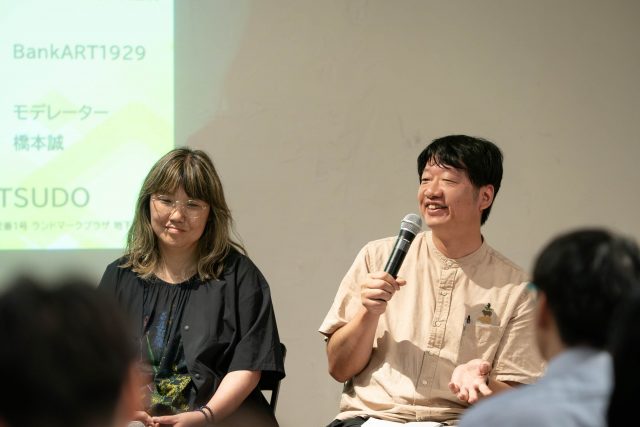 前半はBankPark YOKOHAMA /(株)竹中工務店の倉田駿さん、Art Center NEWの小川希さん、BankART1929の細淵太麻紀さんが登壇し、各団体の活動概要や協働の可能性について発表。後半は、企画・編集者の橋本誠さんをモデレーターに迎えたディスカッションや情報交換会が開かれました。