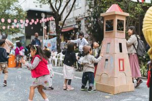2019年度の関内外OPEN!では、個別に実施する「オープンスタジオ」の他に、クリエイターと関内まちづくり振興会が共同して実施する「道路のパークフェス」を開催。地域団体との共同開催により、市民とクリエイターがさらに深く交流する機会になりました。